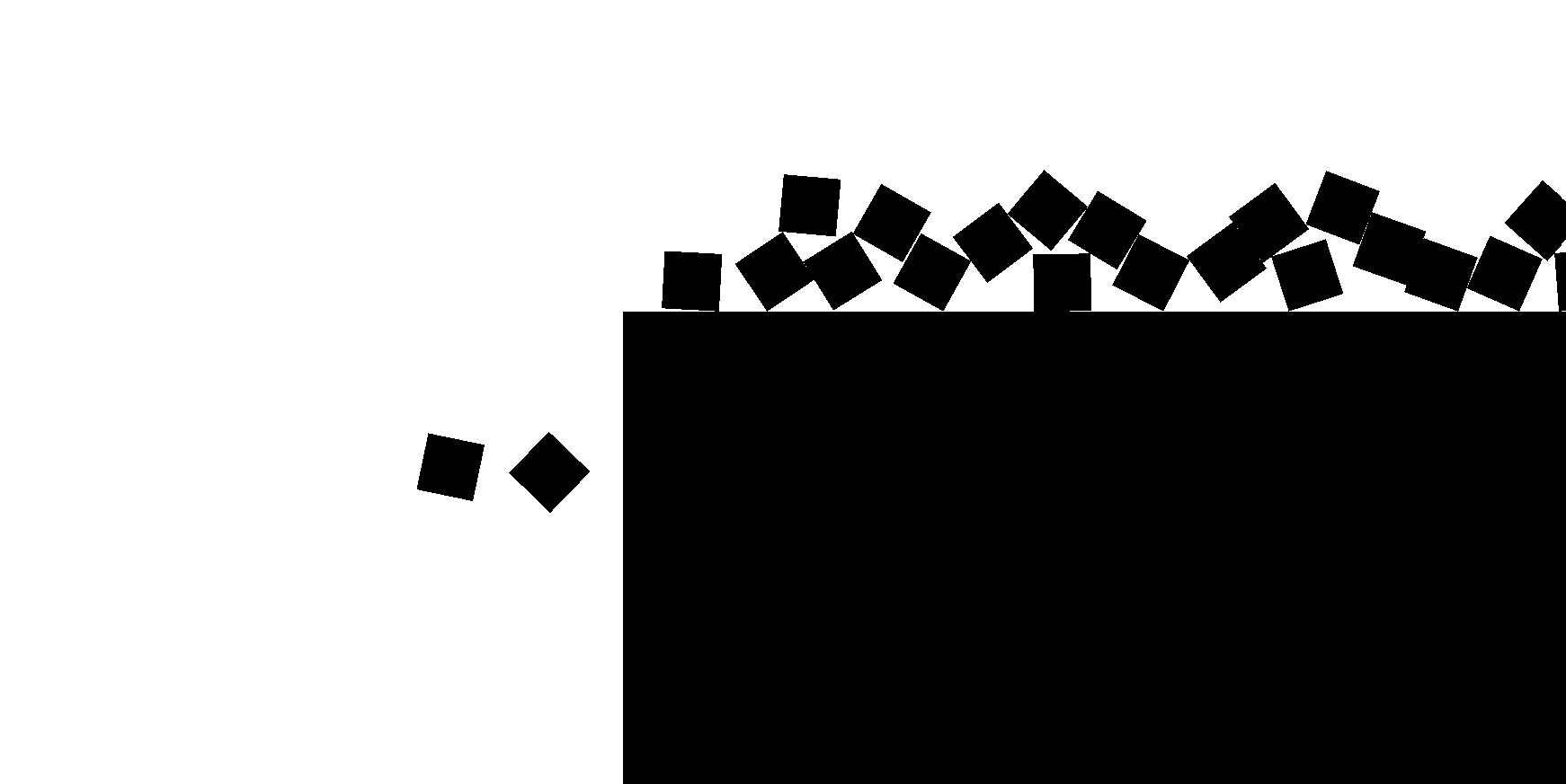 The setup is a stark, 1-bit world: a pure white screen with a large black rectangle acting as a ground. Black cubes spawn off-screen and roll toward the left. There is no high-level AI directing them; they are simply driven by a relentless momentum toward an inevitable ledge.